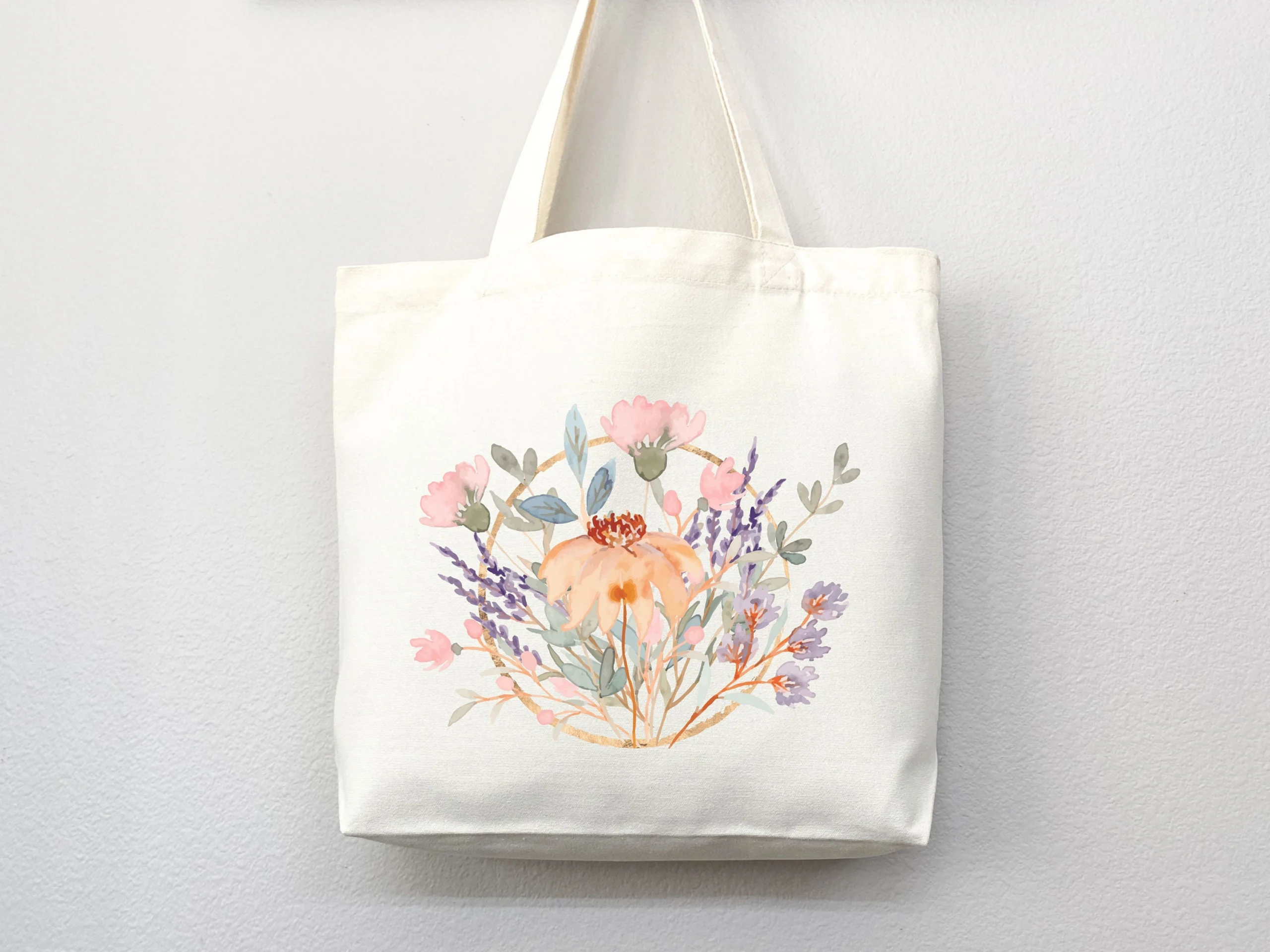 Product Name: Watercolor Floral Wreath Print Canvas Tote Bag